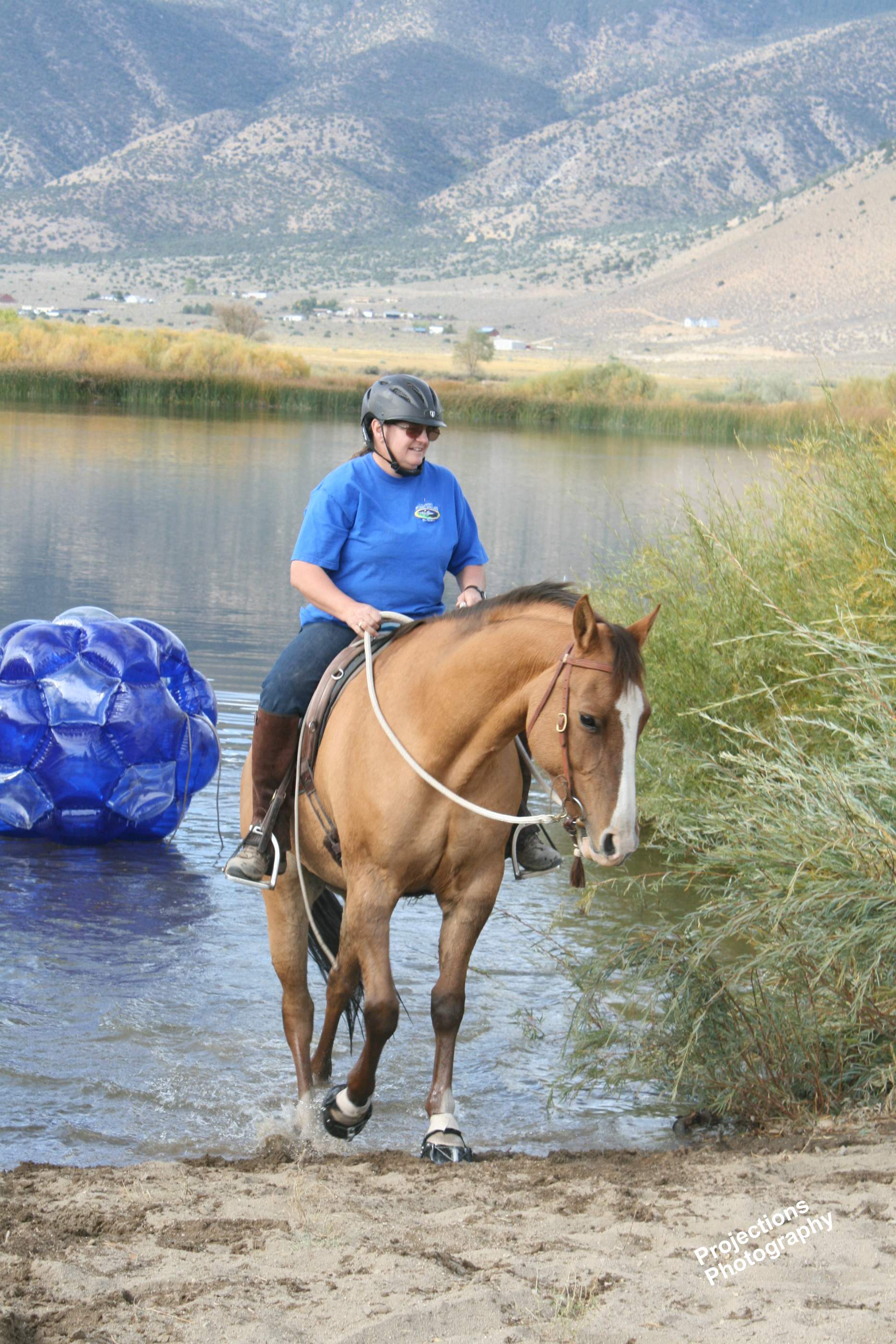 So yesterday, we trailered over to Smith Valley to do the annual Alzheimers Ride at the Hunewill Ranch. There is a Trail Trial, followed by the ride itself. I decided to sign up to do both. My goals for the Trail Trial were simple: walk quietly between obstacles on a loose rein, wait quietly for your turn at obstacles on a loose rein, don’t get silly about the other horses. Notice that my goals had nothing to do with the obstacles. I figured I’d just do what I could and not worry about scores. It would be good experience for Dolly and give purpose to what we were doing. We didn’t do so well on some of the early obstacles. She wanted to rush when she needed to stop and relax, so that’s added to the list of goals for the future. But, basically, Dolly tried at every obstacle and did very well in between them. She screamed once or twice, but the only time she got concerned was when a group of 4 horses we had been following disappeared into some willows up ahead and she wanted to catch up.